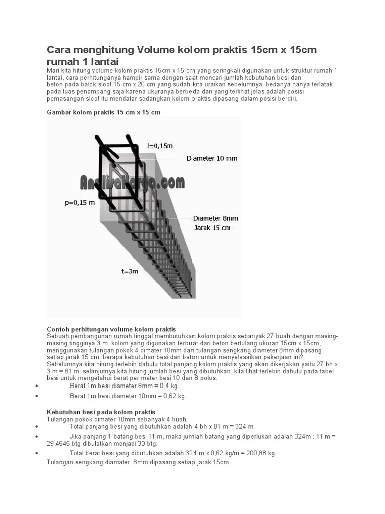 Cara Menghitung Volume Kolom Praktis 15cm x 15cm Rumah 1